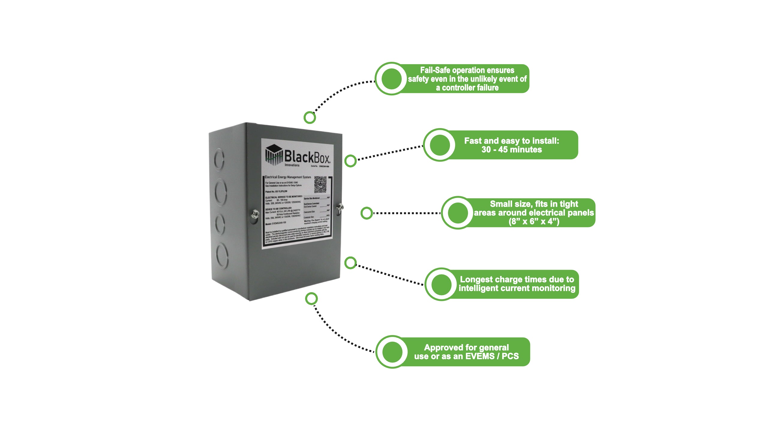 Black Box installs in just 30–45 minutes, fits easily in tight spaces, and doesn’t require disconnecting service wires or adding extra breakers. Its intelligent current monitoring delivers the longest possible charge times while keeping your home safe. Approved for general use and as an Energy Management System (EVEMS / PCS), it supports real-time power monitoring, remote shutdown override, and other future-ready features.